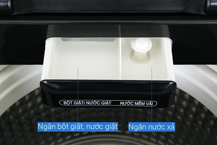 - Bảng điều khiển song ngữ Anh - Việt dễ sử dụng kết hợp với núm xoay để lựa chọn chương trình làm cho việc thao tác trở nên thuận tiện hơn cho người dùng. Bên cạnh đó, bảng điều khiển được đặt phía sau cũng giúp người dùng dễ dàng hơn trong việc vận hành máy giặt.